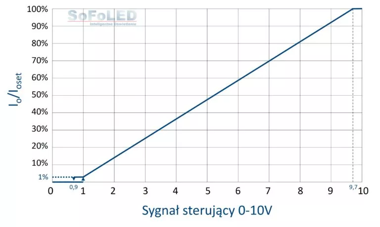 Regulacja prądu wyjściowego sygnałem 1-10V (wyłączenie sygnałem <0,9V) oraz PWM 10V.